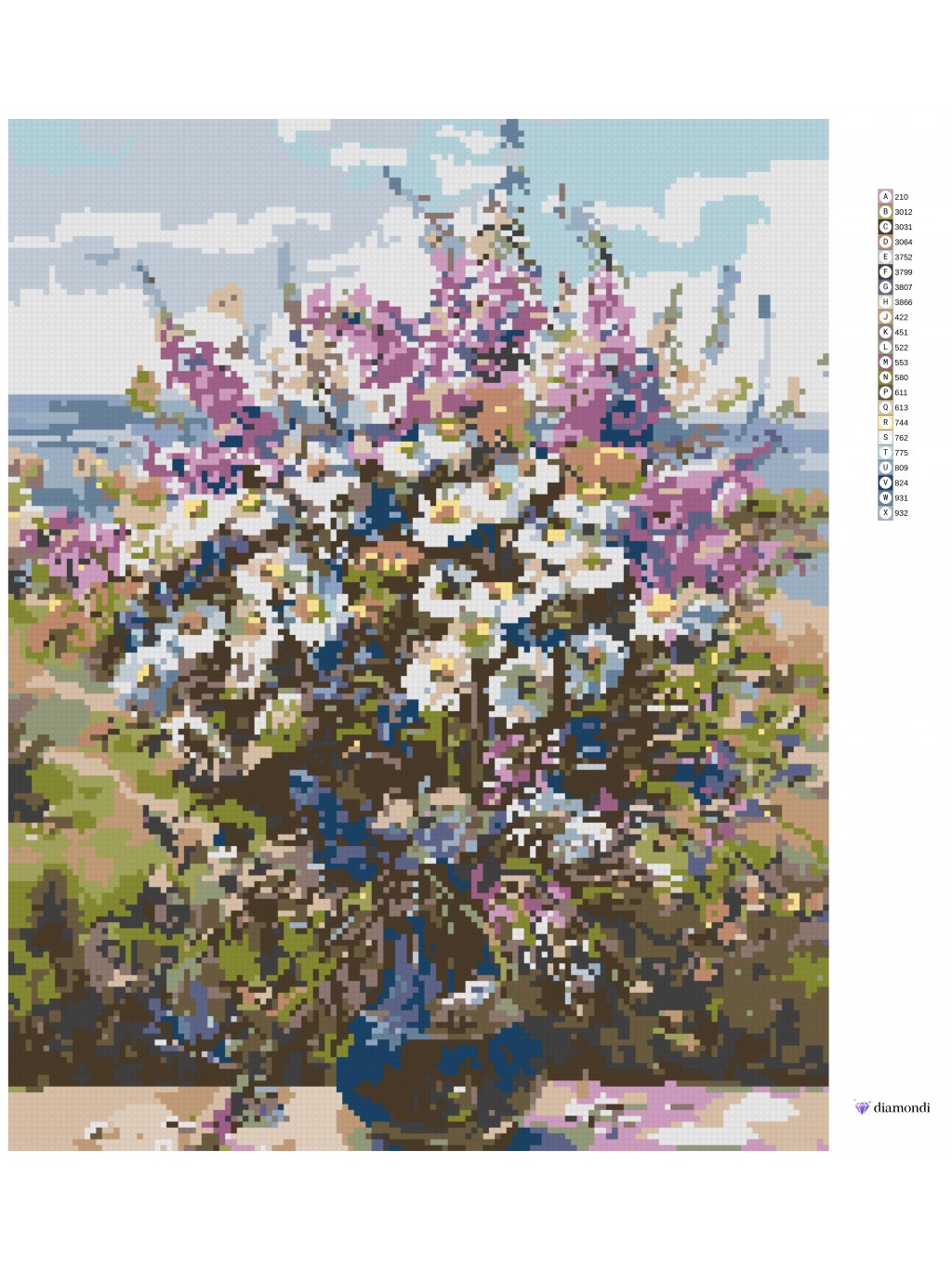 Haft diamentowy - Letni bukiet w szklanym wazonie