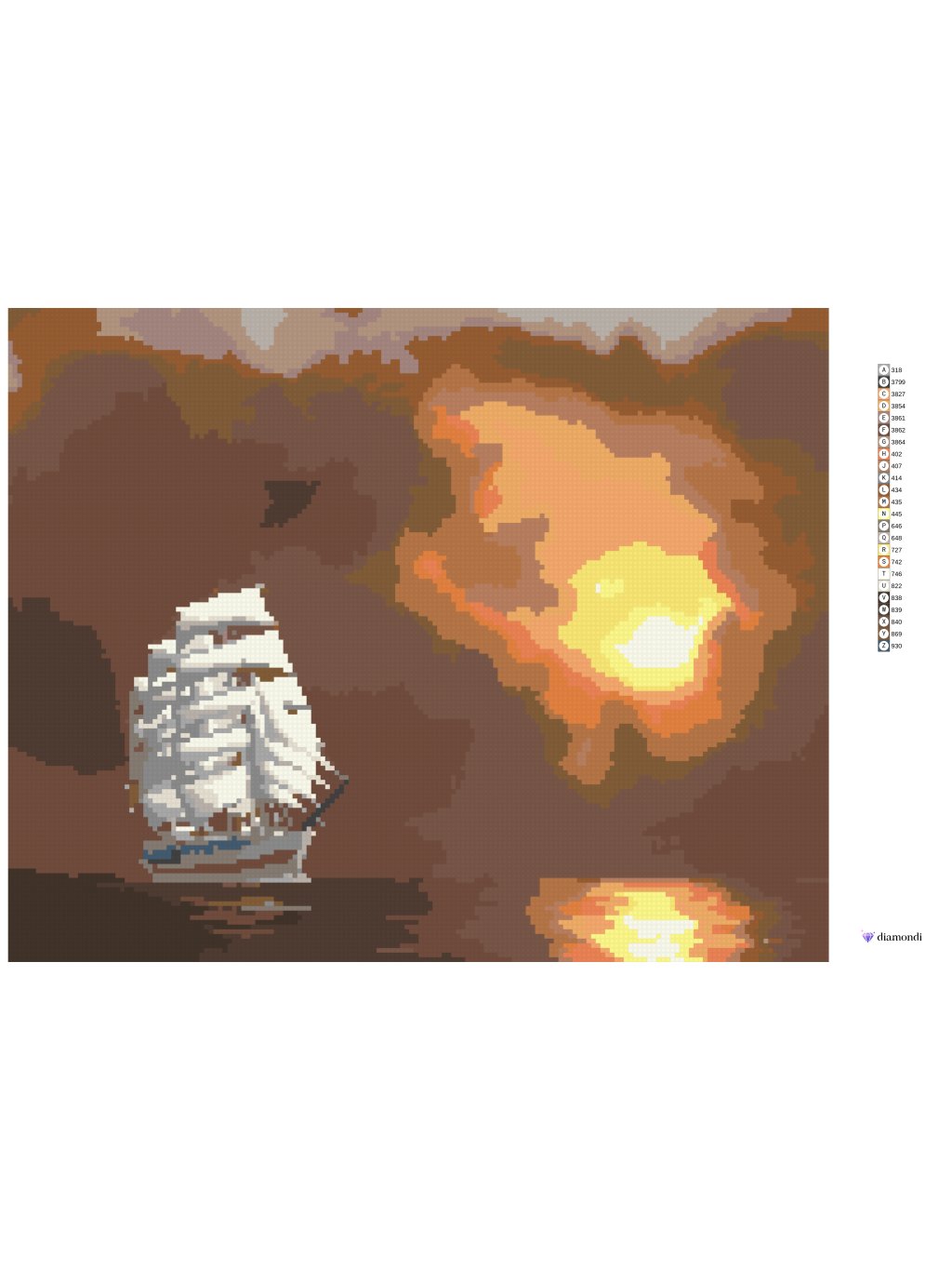 Haft diamentowy - BIAŁY ŻAGLOWIEC I SŁOŃCE ZA CHMURAMI (D. RUSTY RUST)