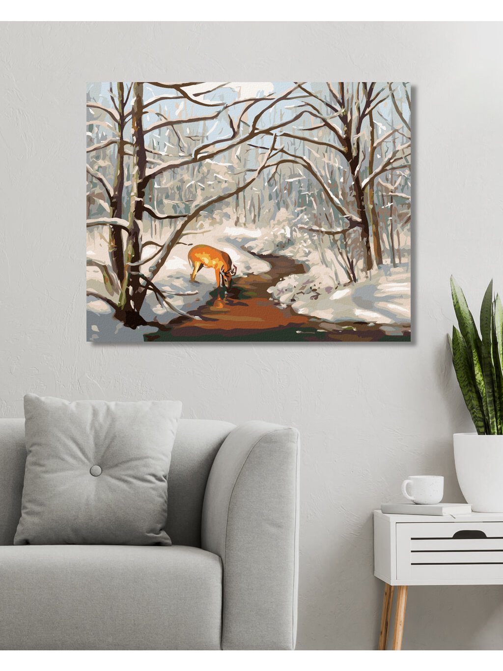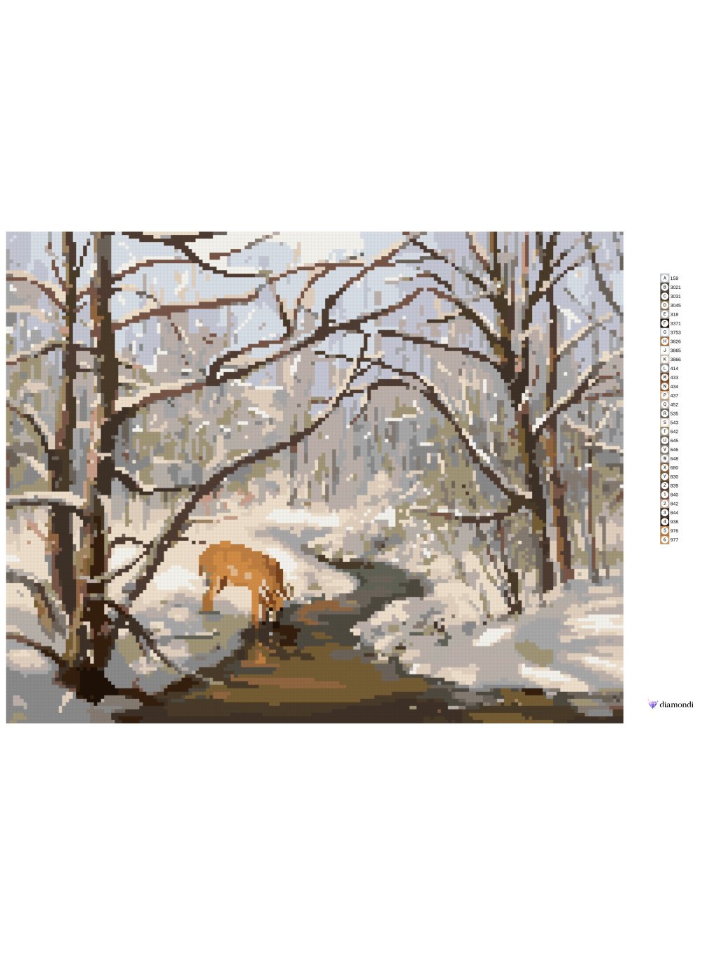 Haft diamentowy - JELEŃ NAD RZEKĄ W ZIMOWYM LESIE (D. RUSTY RUST)