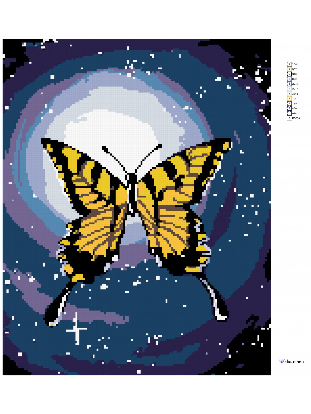 Haft diamentowy - Motyl na tle księżyca