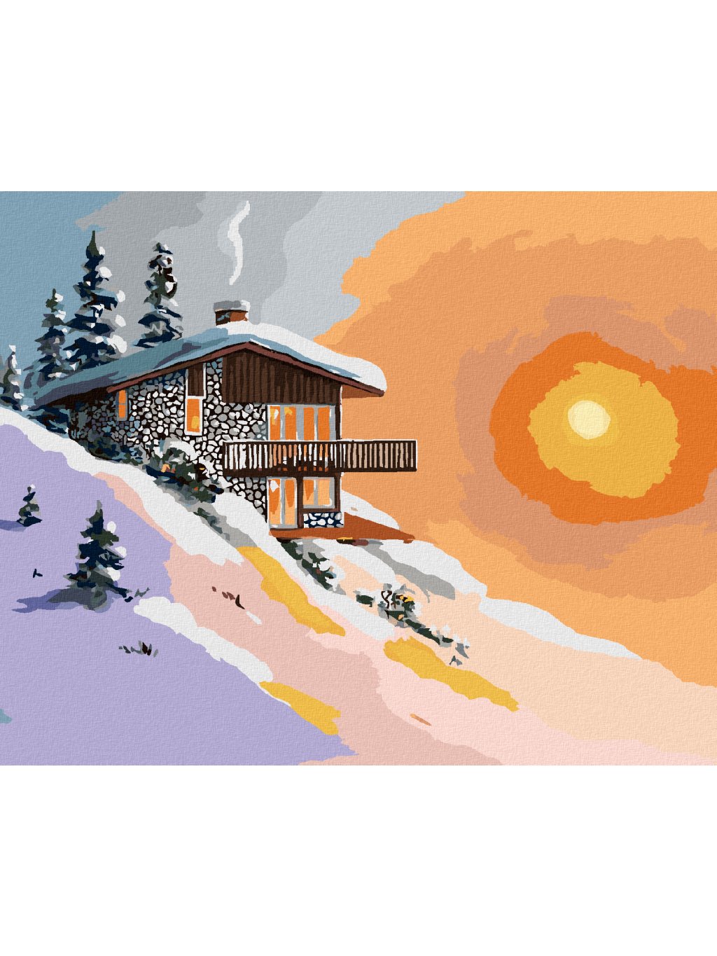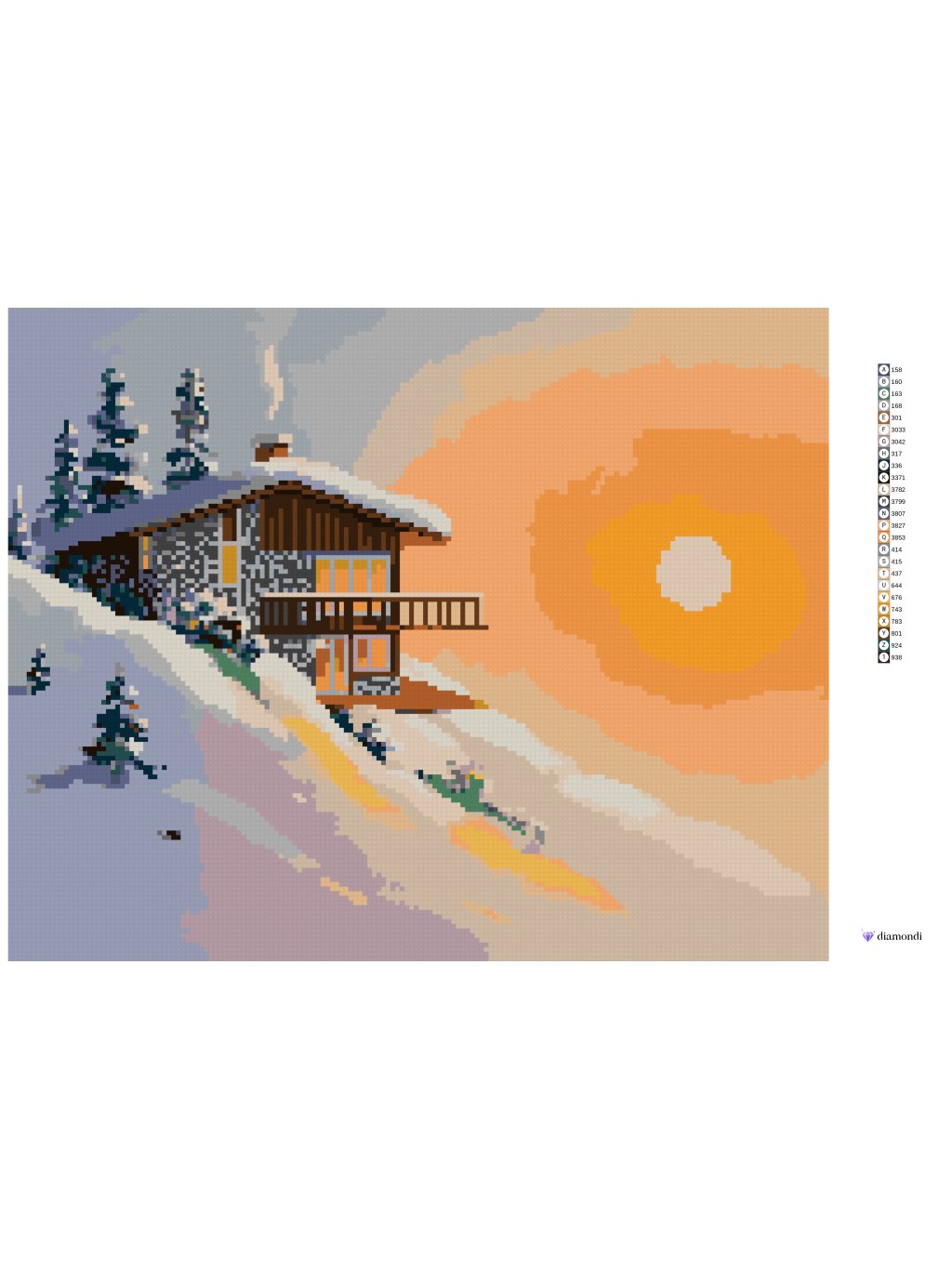 Haft diamentowy - OŚNIEŻONY DOMEK O ZACHODZIE SŁOŃCA (D. RUSTY RUST)
