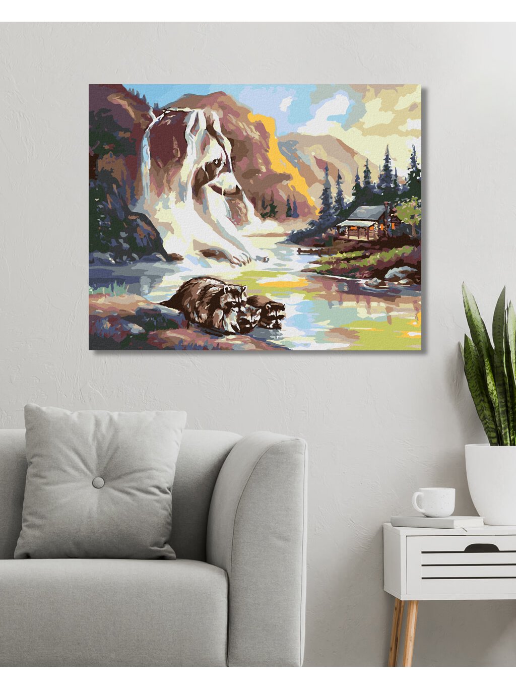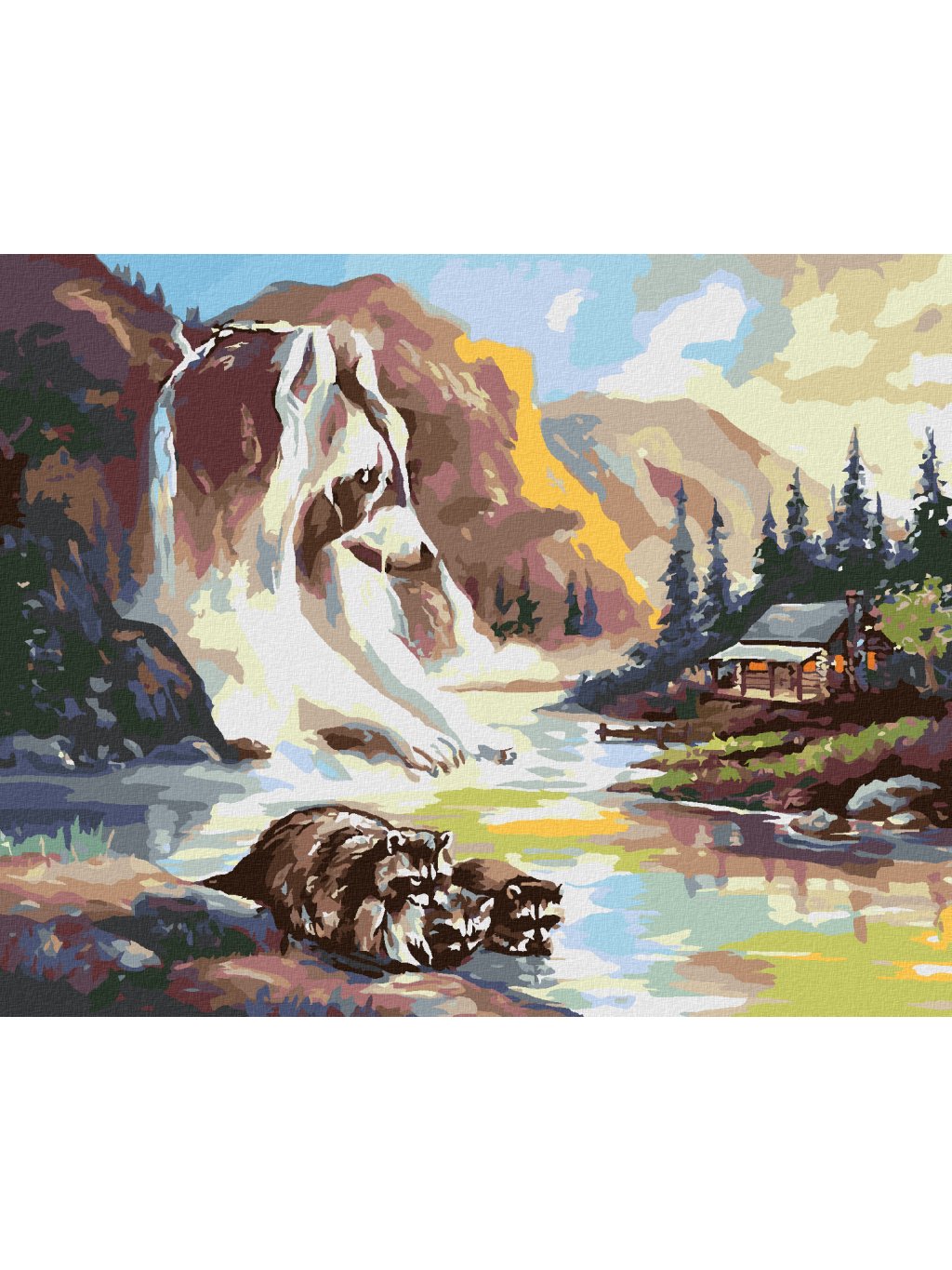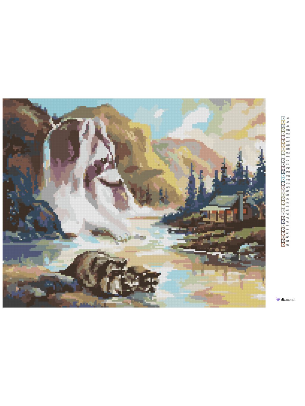 Haft diamentowy - SZOP PRACZ NAD RZEKĄ Z WODOSPADEM I CHATKĄ (D. RUSTY RUST)