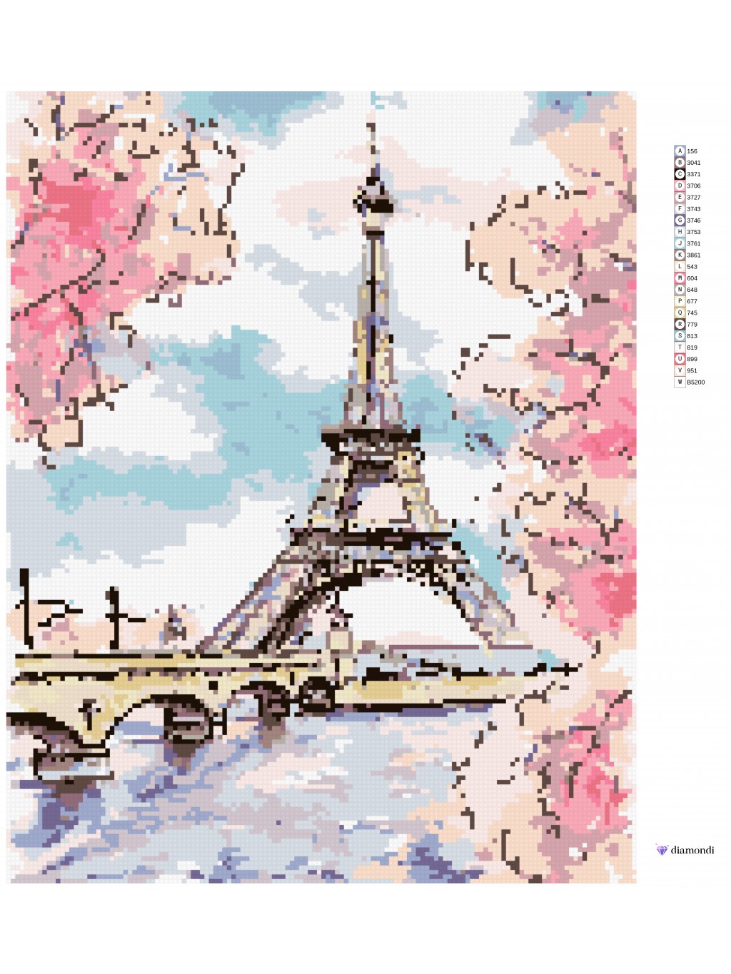 Haft diamentowy - WIEŻA EIFFLA I RÓŻOWE KWITNĄCE DRZEWA